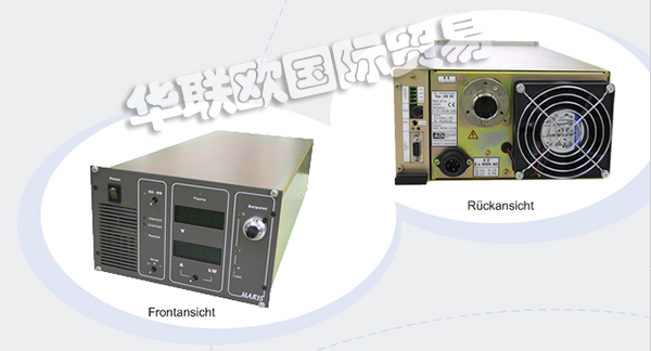 脈沖發生器RD 300與大多數ADL電源一起使用諧振開關原理。由于效率極高(30kW時為99.5%),該器件非常緊湊,僅產生高達150W的低功耗?,F有系統可以容易地改裝,因為發電機與DC電源并聯直接連接到陰極。該器件的工作頻率為2kHz。然而,對于外部信號發生器,頻率可以在0.2到3kHz的范圍內變化??梢酝ㄟ^控制線連接多個發電機,以實現自動同步。