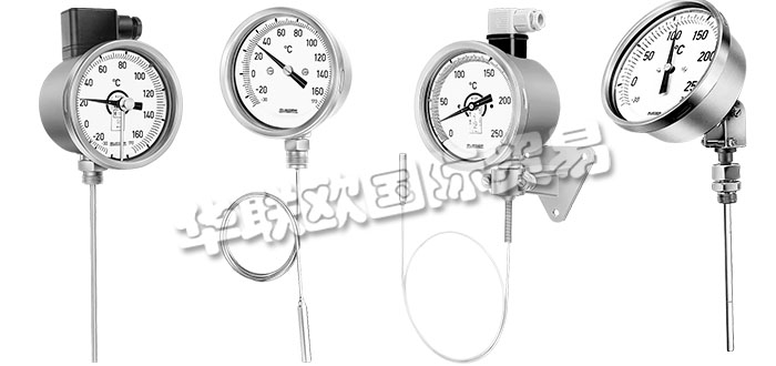 2.RUEGER氣體溫度計的主要特點是可以進行廣泛的測量(-260°C至800°C),極高的抗振動能力以及可以遠距離進行測量的能力(遠程讀數)。這些溫度計的工作原理是根據氣體定律,壓力隨溫度而變化。氣體溫度計的測量系統由毛細管和管狀線圈組成。作用在傳感器上的溫度變化會成比例地改變其中包含的氣體的壓力。氣體的膨脹使線圈松開。線圈的位移角度通過放大運動傳遞到指針,因此可以讀取溫度。