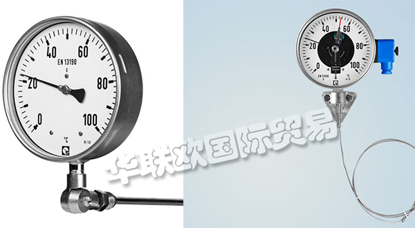 ②可以使用充氣溫度計測量-80°C到+600°C之間的溫度。顯示精度為滿刻度值的±1%。氣體填充物在毒理學和生態上均無害。對于充氣遠程溫度計,可以在溫度傳感器和測量彈簧之間提供最長100m的連接電纜。
