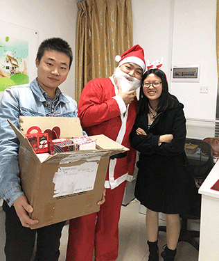 推開門走進(jìn)來(lái),辦公室正放著悠揚(yáng)的音樂(lè)Merry Christmas,緩緩流淌的祝福溢滿了歸人的夢(mèng)境。辦公區(qū)域,慈祥的圣誕老人微笑著拿著禮物等待上班的人兒,給他們帶來(lái)一天的喜悅和祝福。