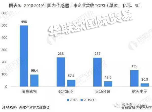 從主要的上市企業來看,年過百億營收的傳感器企業僅有2家,這與國內傳感器企業發力晚、競爭大有關聯,即便是作為國內傳感器領頭羊歌爾股份,其營收也僅過200億元(海康威視(002415)和大華股份(002236)因主營業務并非傳感器,故而不做橫向對比)。
