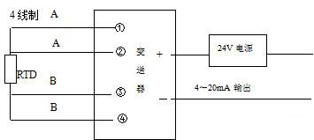 熱電阻溫度變送器是由基準單元、R/V轉換單元、線性電路、反接保護、限流保護、V/I轉換單元等組成。測溫熱電阻信號轉換放大后,再由線性電路對溫度與電阻的非線性關系進行補償,經V/I轉換電路后輸出一個與被測溫度成線性關系的4~20mA的恒流信號。