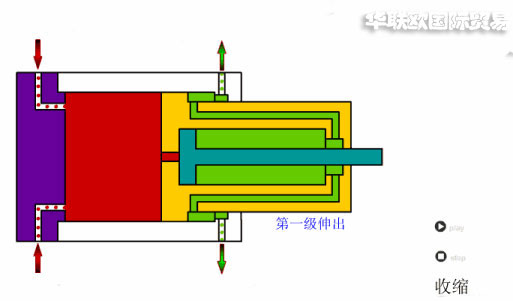 多級(jí)伸縮缸:最多可帶4個(gè)套簡(jiǎn),收攏長(zhǎng)度比標(biāo)準(zhǔn)缸短.有單作用或雙作用,它們與標(biāo)準(zhǔn)缸相比是比較貴的,通常用于安裝空間較小但需要較大行程的場(chǎng)合,