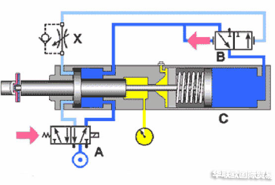 單作用缸:當(dāng)僅在一個(gè)方向需要推力時(shí),可以采用一個(gè)單作用缸;