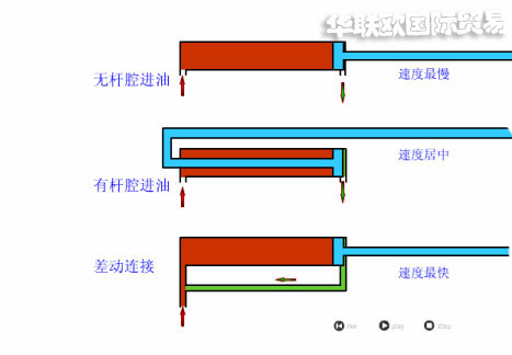BEETZ液壓缸的差動(dòng)原理,就是兩端同時(shí)接供油管路,一端由于活塞桿作用面積要小于另一端,利用差動(dòng)原理實(shí)現(xiàn)運(yùn)動(dòng)。