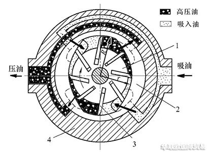 1-轉(zhuǎn)子 2-定子 3-葉片 4-泵殼