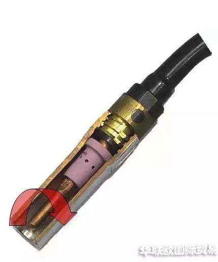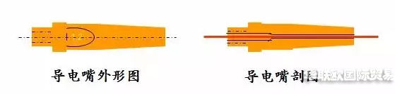 導電嘴是直接向焊絲傳遞電流的零件, 導電嘴內孔與焊絲接觸而導電, 導電嘴外表面與噴嘴內壁之間流過保護氣體。