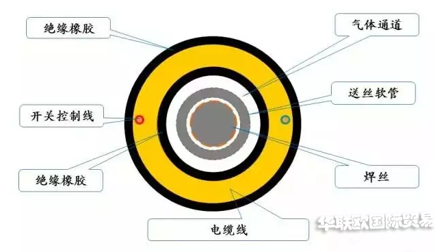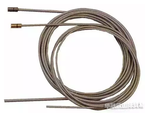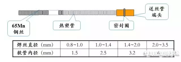 作用:送絲軟管由65Mn鋼絲繞制,擔負著從送絲機向BINZEL焊槍輸送焊絲的任務,作為焊絲運行的通道,對實現穩(wěn)定、勻速送絲,保證焊接電弧的穩(wěn)定性有著極大的影響。