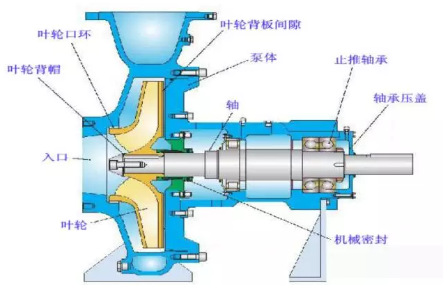 在單吸式離心泵中,該部位如不用軸封裝置,泵殼內高壓水就會向外大量泄漏。