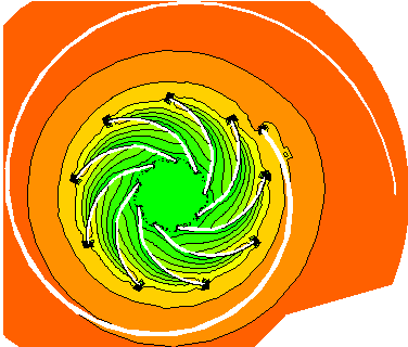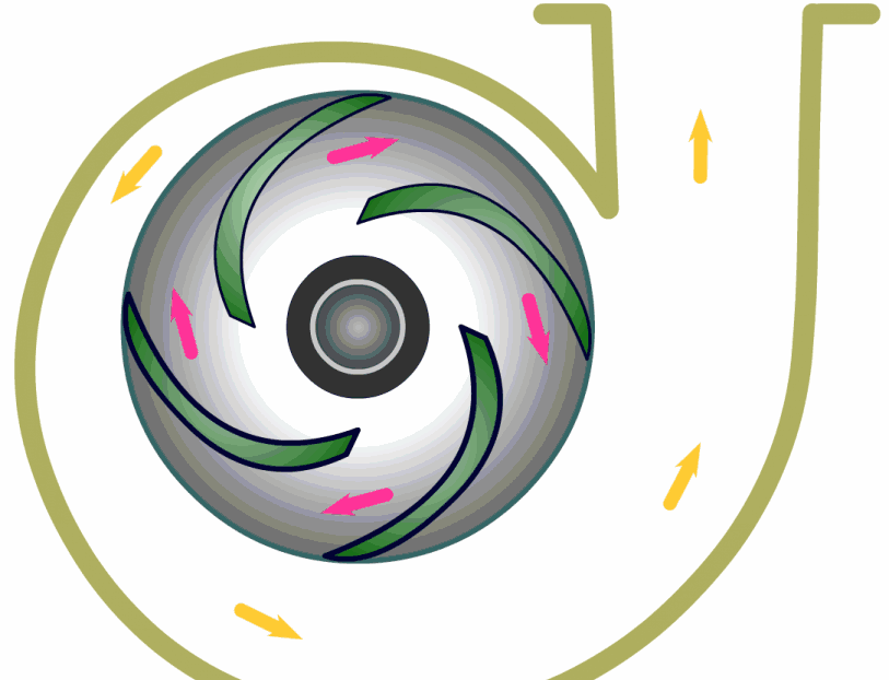 由若干個彎曲的葉片組成的葉輪置于具有蝸殼通道的泵殼之內。