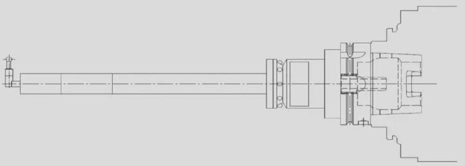 缸孔精鏜完成后,進(jìn)行Marposs在線直徑測量。Marposs測頭是一個(gè)刀柄式的氣動(dòng)檢具,其一系列測量動(dòng)作由加工程序控制實(shí)現(xiàn),Marposs在線測量系統(tǒng)對(duì)最后一個(gè)精鏜后的缸孔進(jìn)行三個(gè)深度截面的精密氣動(dòng)測量,測量數(shù)值顯示在線旁的Marposs測量顯示儀上。測頭結(jié)構(gòu)如圖所示。