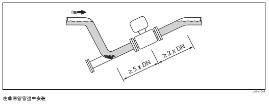 如可能,傳感器的安裝位置應遠離閥、三通、彎頭等管件。 保證下列前后直管段長度,確保測量精度: • 前直管段長度:³ 5 × DN • 后直管段長度:³ 2 × DN