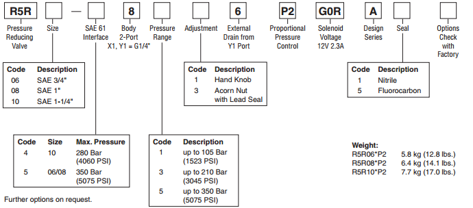 比例減壓閥R5R*P2都是基于機械調(diào)整序列R,機械先導閥和主級之間的附加比例單元允許連續(xù)壓力調(diào)節(jié)。最佳性能可與數(shù)字放大器模塊PCD00A-400來實現(xiàn)。該比例閥具有按比例電磁鐵連續(xù)調(diào)整的功能,可隨著機械的最大壓力調(diào)整,2端口體與SAE61凸緣,3種尺寸(SAE¾“,1”,11/4“),3級壓力。